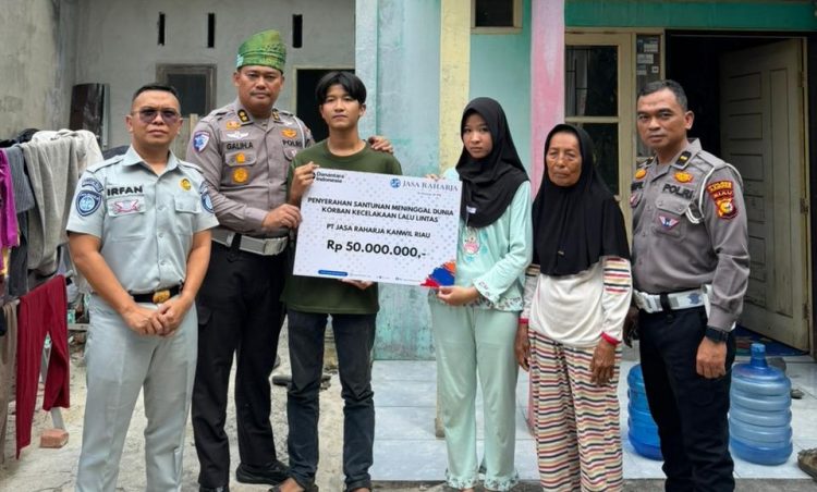 “Ditlantas Polda Riau bersama PT Jasa Raharja telah menyerahkan santunan kepada keluarga korban kecelakaan lalu lintas. Santunan ini diterima langsung oleh ibu almarhum dan anak-anaknya,” ujar Galih.