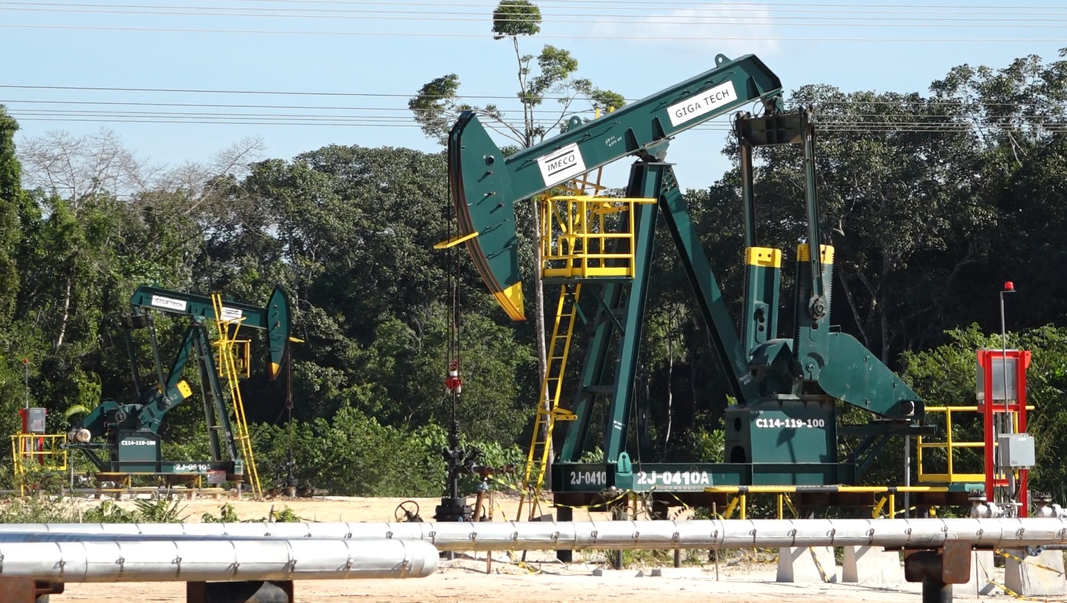 Ilustrasi pipa minyak dan pompa angguk di area ladang minyak sebagai gambaran sektor industri migas dan perusahaan daerah.